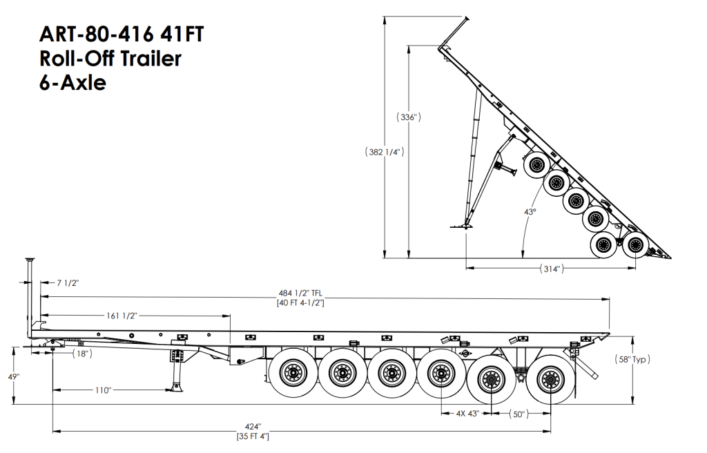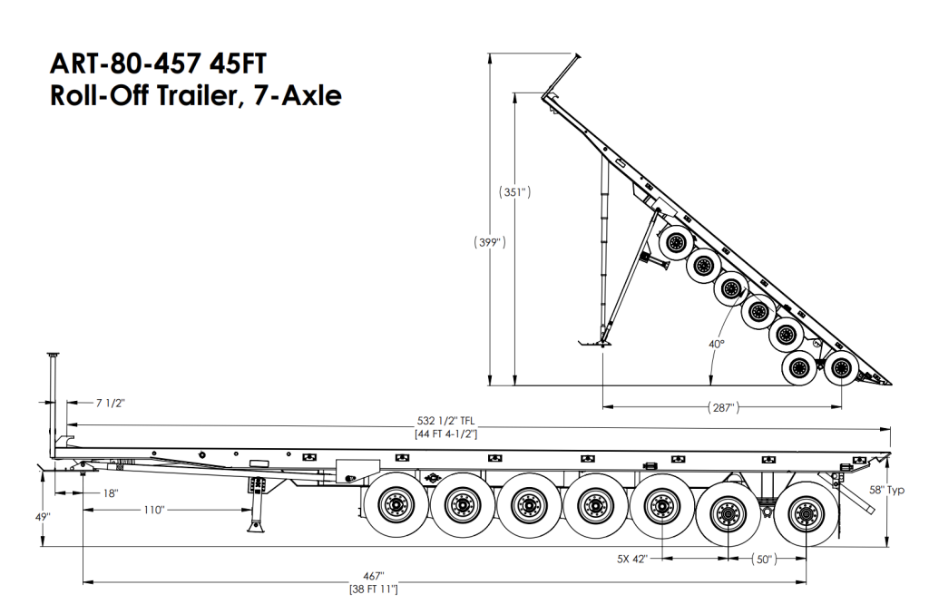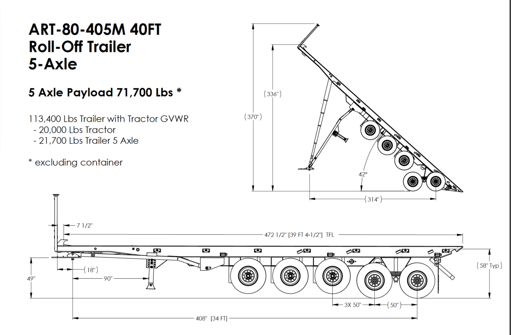 - Two lengths (41 ft, 45 ft): Match your route mix, bin sizes and roll off trailer pairings to maximize use and revenue every day.